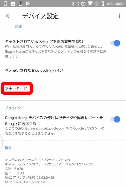 「Google Home」アプリ v1.25.81.13 では新たに、リマインダーなどの音声通知をミュートするマナーモードも新たに実装されました。