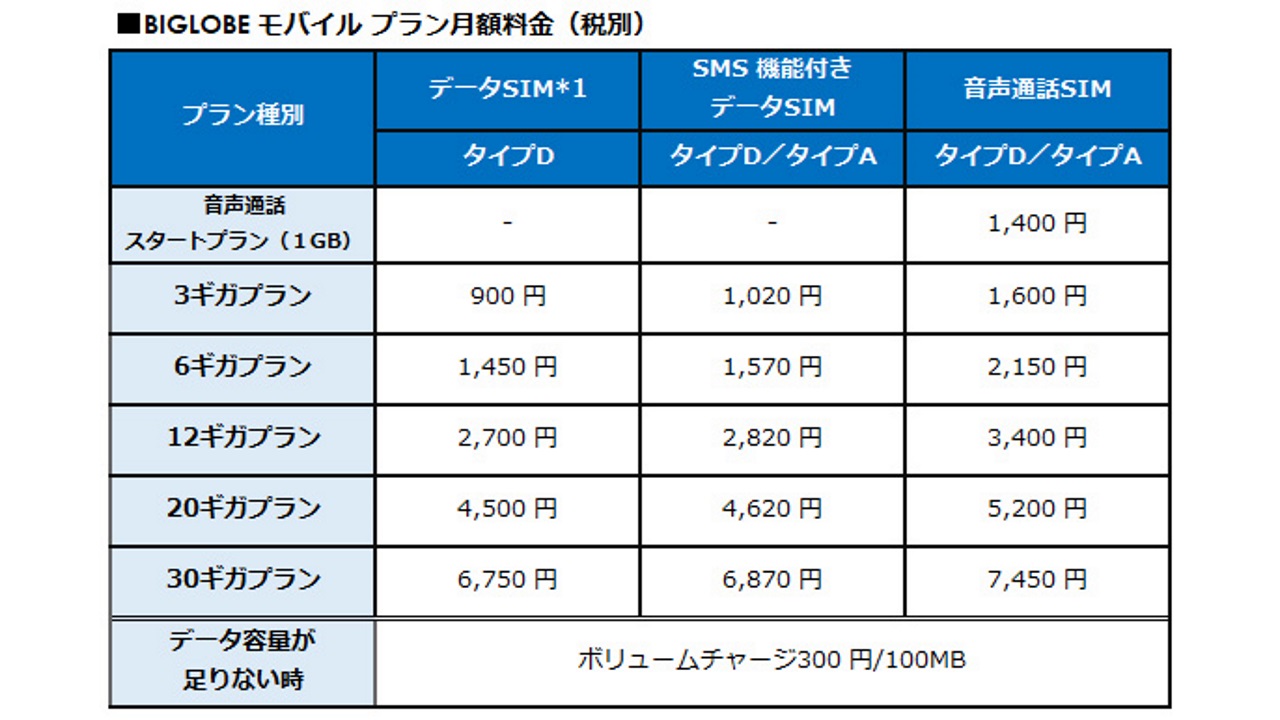 BIGLOBEモバイル、KDDI回線「タイプA」提供開始
