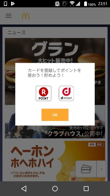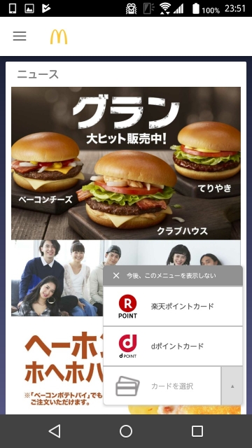 「マクドナルド」アプリ内で楽天ポイント/dポイントカード表示可能に