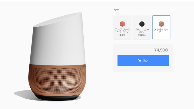 国内では「Google Home」と共に、(海外では)新バリエーションとなる “コーラル” “カーボン” “カッパー” 3 色がラインアップされています。今回 Google ストアで発売されたのは、その中でもメタル素材を使用した “カッパー” のみ。価格は 4,500 円です。