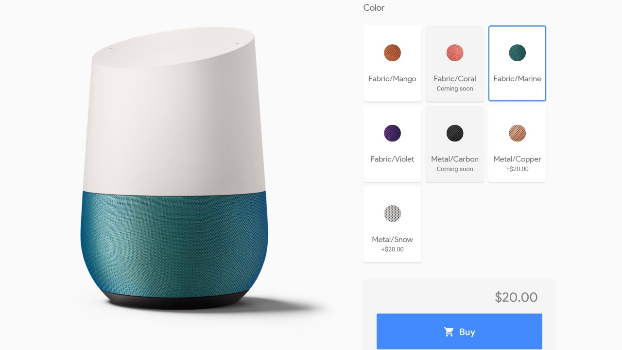 “カッパー” はメタル素材を使用していて、ファブリック素材を利用した「Google Home」デフォルトベースから素材が変わっています。