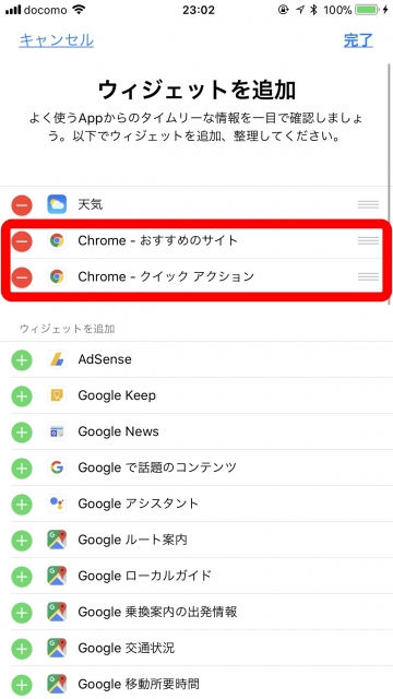 iOS 版「Chrome」アプリに追加されたウィジェットは、“おすすめのサイト” と “クイック アクション” の 2 つです。