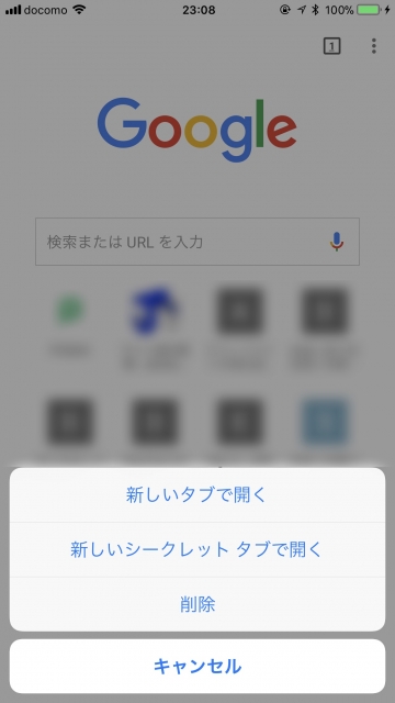 “クイック アクション” は、検索や iOS 版「Chrome」の目玉機能 “QR コードスキャナ” をダイレクトに起動できるショートカットが 4 つ表示されます。