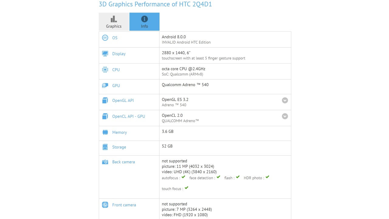 HTC が新たに開発していると思われる新型スマートフォンの型番「2Q4D1」が、2017 年 10 月 18 日付けでベンチマークサイト GFX Bench に登場しました。