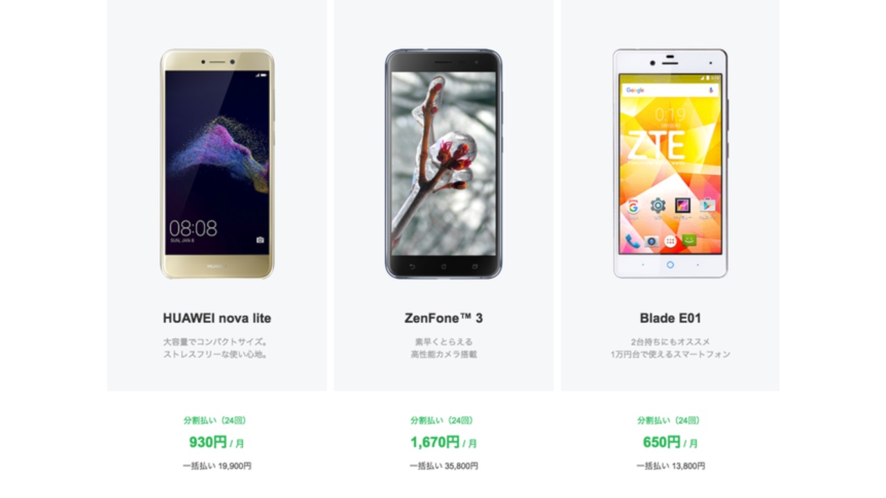 例えば「GRAND X LTE」は月々 590 円なので、音声通話 SIM の「コミュニケーションフリープラン 3GB(税込み 1,825 円)」と一緒に契約した場合、月々たったの 2,415 円で運用できることになります。