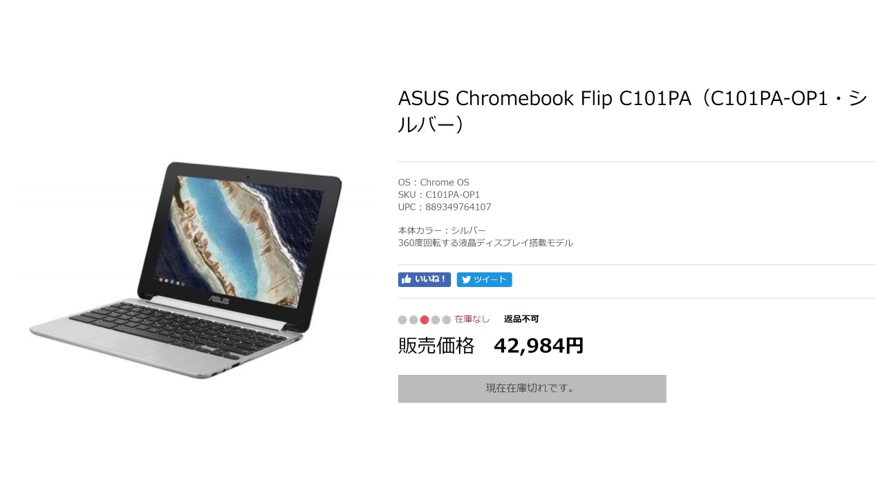 「Chromebook Flip C101PA」は一旦 9 月発売として発表されたものの、スペックをアップグレードして改めて投入するということで 10 月中旬以降の投入として再発表されました。それが結局、10 月中旬以降となる下旬に発売されたわけです。