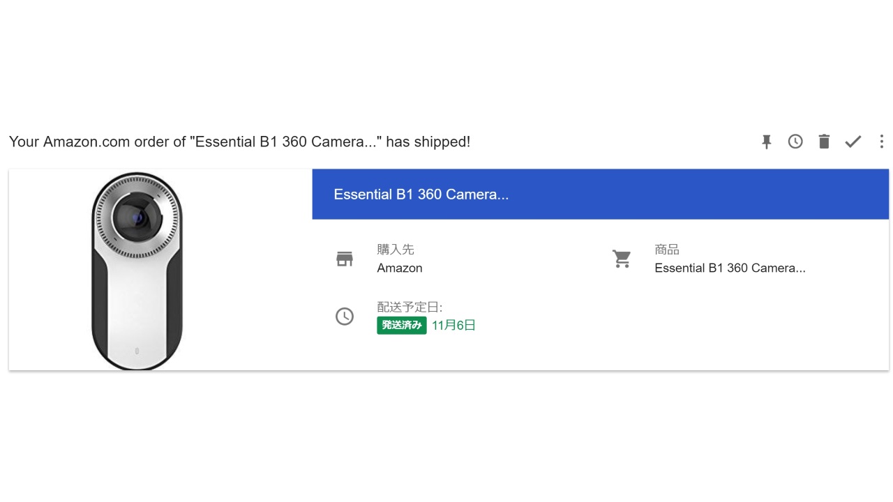 先日米国の Amazon.com で購入し、出荷待ちとなっていた「Essential Phone」用の全天球カメラモッド「360 Camera」が、昨夜未明に出荷されました。