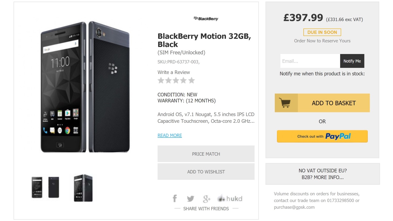 日本直送に対応している英国のガジェットショップ Handtec が、BlackBerry のフルタッチディスプレイ採用新型 Android スマートフォン「BlackBerry Motion」の予約を開始しました。