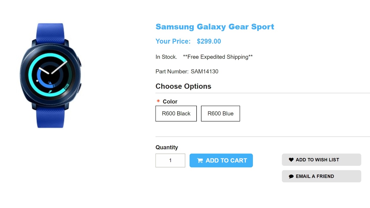 1ShopMobile は「Gear Sport」を、$299.99 で販売しています。この価格には、国際送料も含まれています。