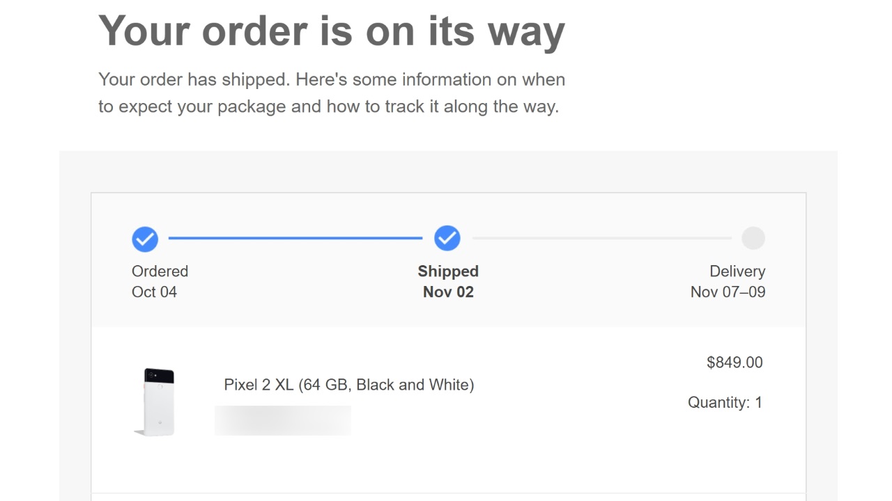 当初 2017 年 10 月 23 日出荷予定とされていた米国の Google ストアで私が手配をした Google スマートフォン「Pixel 2 XL」ですが、約 10 日遅れでようやく Google ストアから出荷されました。