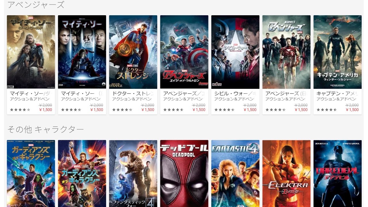 Google Play において、米国出版社マーベルの映画作品が期間限定でお得に購入できるキャンペーンが開催中です。