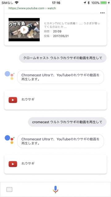 2017 年 11 月 15日、8 月末に iPhone 向けとしてリリースされた iOS 版「Google アシスタント」が v1.1.5316 にアップデートされ、「Chromecast」での動画再生指示をサポートしました。