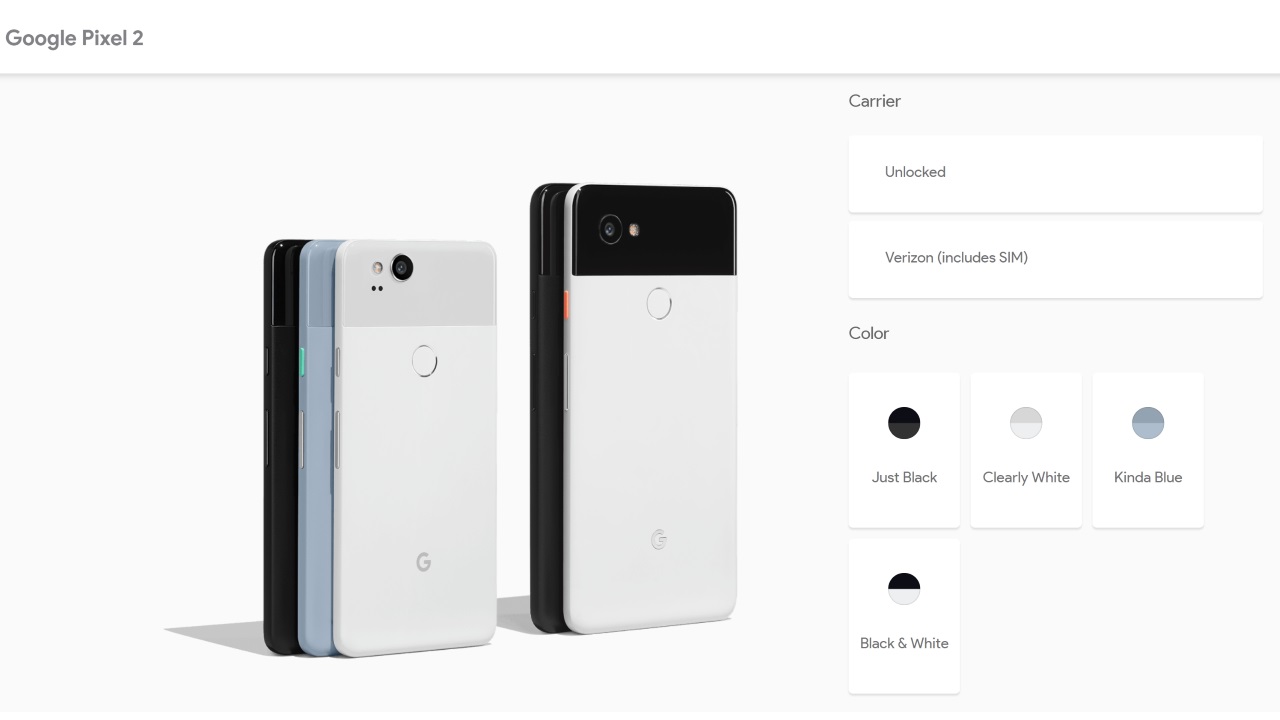 - Pixel 2:Just Black、Clearly White、Kinda Blue
