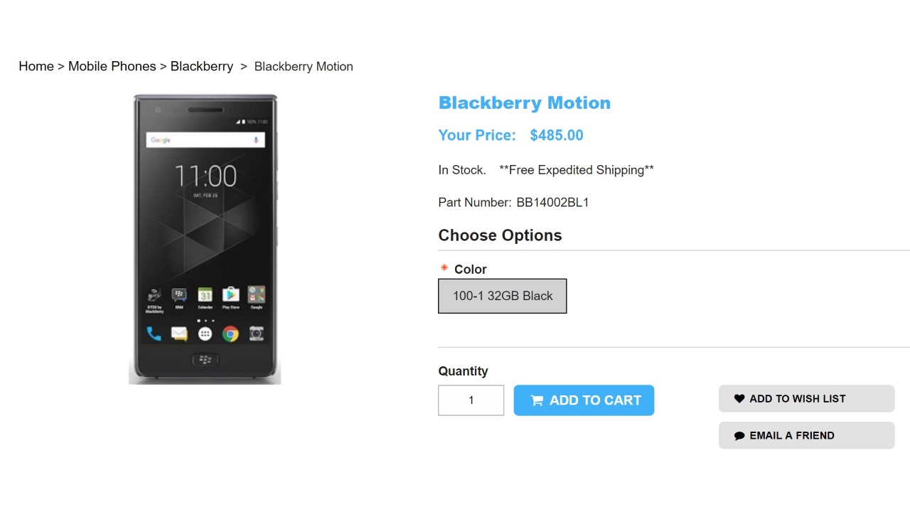 日本直送と日本語に対応している香港のガジェットショップ 1ShopMobile が、BlackBerry のフルタッチディスプレイ採用新型 Android スマートフォン「BlackBerry Motion」の取り扱いを開始しました。