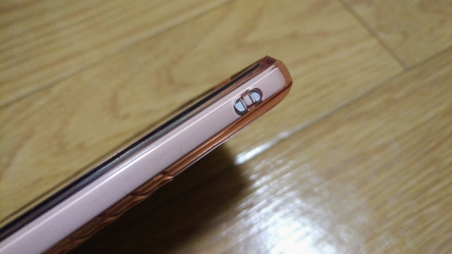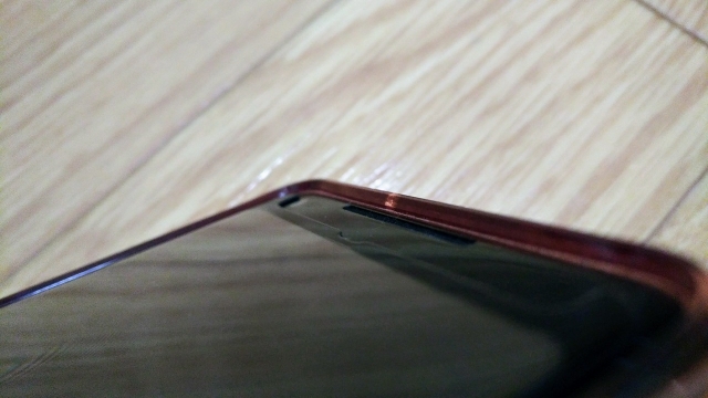 ディスプレイ面よりも、縁が出っ張っているのがわかりますね。これのお陰で、恐らくディスプレイ面から落下させたとしても直接ディスプレイが地面と接触する可能性はかなり少なくなると思われます。