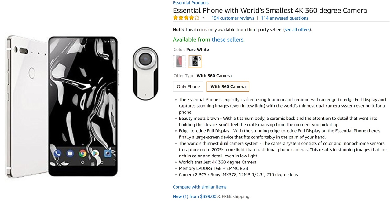 - [amazonjs asin=”B075TNXJMW” locale=”US” title=”Essential Phone with World’s Smallest 4K 360 degree Camera”]