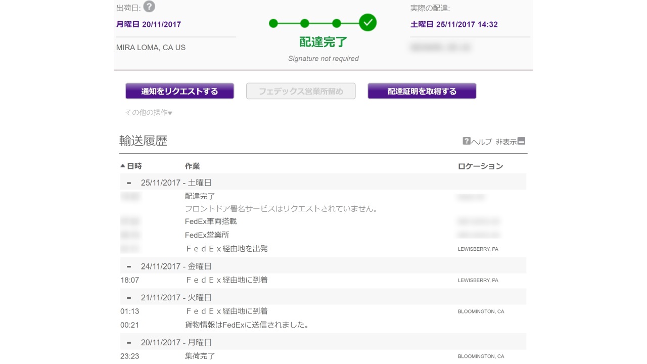 この時は本来の配達場所とほぼリアルタイムに連絡を取り合っていたので、トラッキング上で “配達完了” となったにも関わらず実際には荷物が届いていないことを瞬時に察知し、即配送業者に連絡して配達し直させたということがありました。