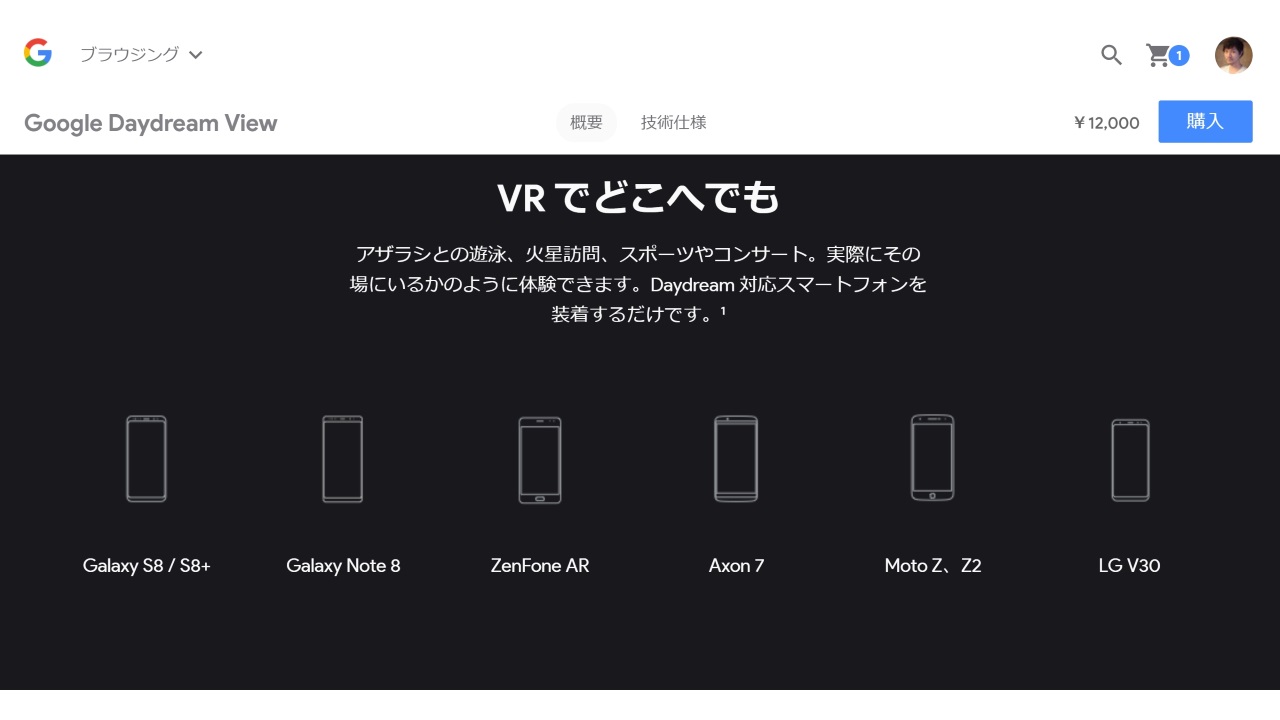 「Daydream View」の国内価格は消費税と送料込み総額 12,000 円です。