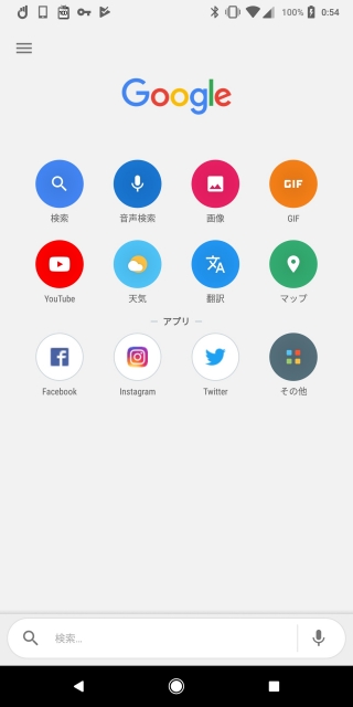 UI は「Google」アプリと似ているものの、フィードなどが実装されておらず、単純な検索やブックマーク、ショートカットに特化した UI となっています。また何気に、日本語表示対応です。