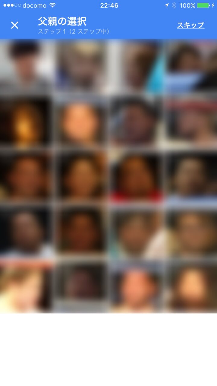 次に “父親” と “子ども” を順に設定し、“完了” をタッチします。“父親” と “子ども” は「Google フォト」の “フェイスグルーピング” で分類された人物アイコンをタッチするだけと簡単です。
