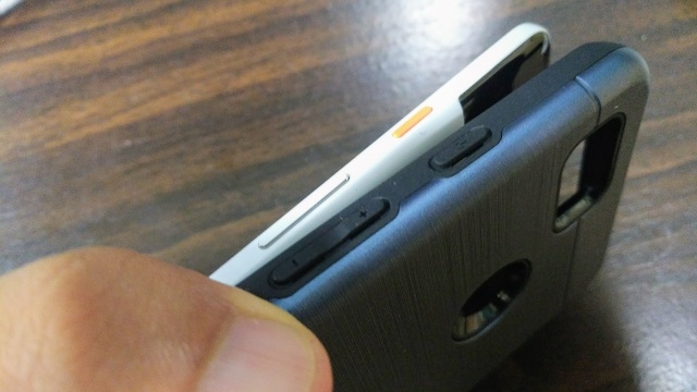 そしてサイドの物理ボタン部分も、「Pixel 2 XL」のボタンをダイレクトに押すより押しやすい仕様。何気にこのボタンが気に入りました。