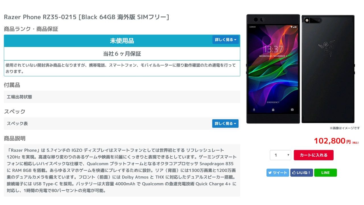 海外スマートフォンや中古スマートフォンを国内で格安販売するイオシスが、先日より海外で発売された「Razer Phone」の販売を開始した模様です。