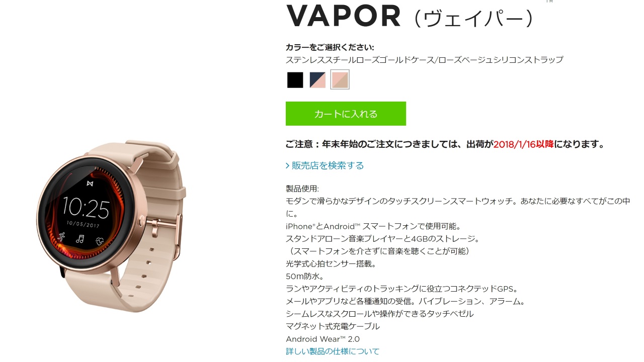 国内の Misfit 公式サイトにて、同社初の Android Wear スマートウォッチ「Misfit Vapor」の追加色となる “ステンレススチールローズゴールドケース / ローズベージュシリコンストラップ” が発売されました。