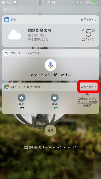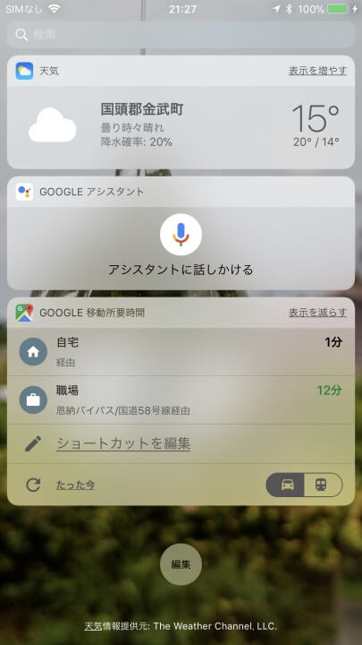 “移動所要時間” ウィジェットはデフォルトでは “自宅” と “職場” がセットされているのですが、“表示を増やす” → “ショートカットを編集” から新たなスポットを追加することも可能です。