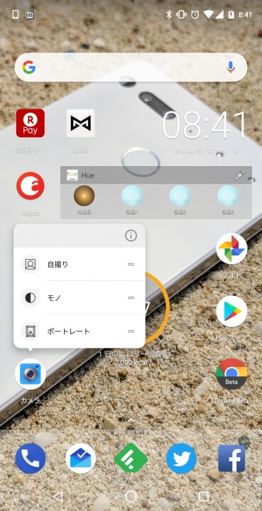 アプリショートカットは Android 7.1 で新たにサポートされた機能で、アプリアイコンを長押しすることでそのアプリで利用できるショートカットがポップアップ表示されます。今回「Essential Phone」ではこのアプリショートカットが追加され、セルフィーの “自撮り”、モノラル撮影の “モノ”、背景をぼかす “ポートレート” の各撮影機能をダイレクトで開くことができるようになりました。