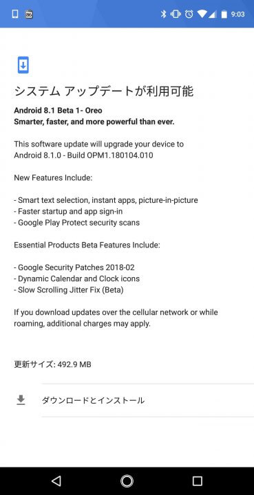 Essential Products は 2018 年 2 月 15 日、同社の第 1 弾スマートフォン「Essential Phone(PH-1)」に対して、Android 8.1 バージョン初のベータ版ソフトウェアアップデート「Android Oreo 8.1 Beta 1(OPM1.180104.010)」を、Android 8.0 Beta 対象機種に向けて OTA で配信開始しました。