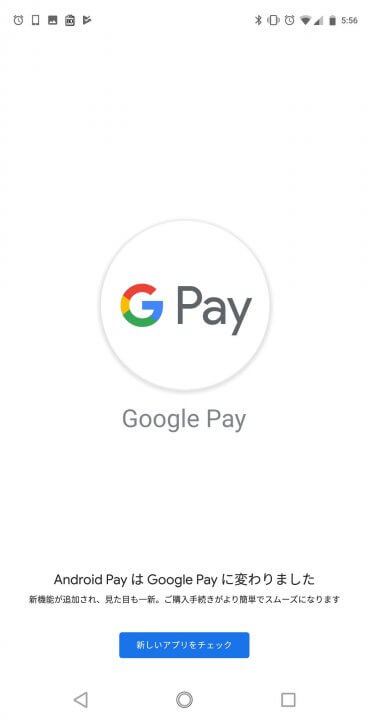 「Google Pay」アプリは「Android Pay」アプリのリニューアル版として、v1.53.186034020 にて自動的に新たな「Google Pay」アプリへと変更されます。