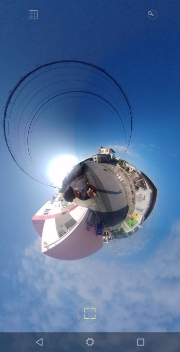 この時に画面左上の「Tiny Planets」モードアイコンをタッチすることで、「Tiny Planets」モードのリトルプラネット状態の視点に切り替えることが可能です。