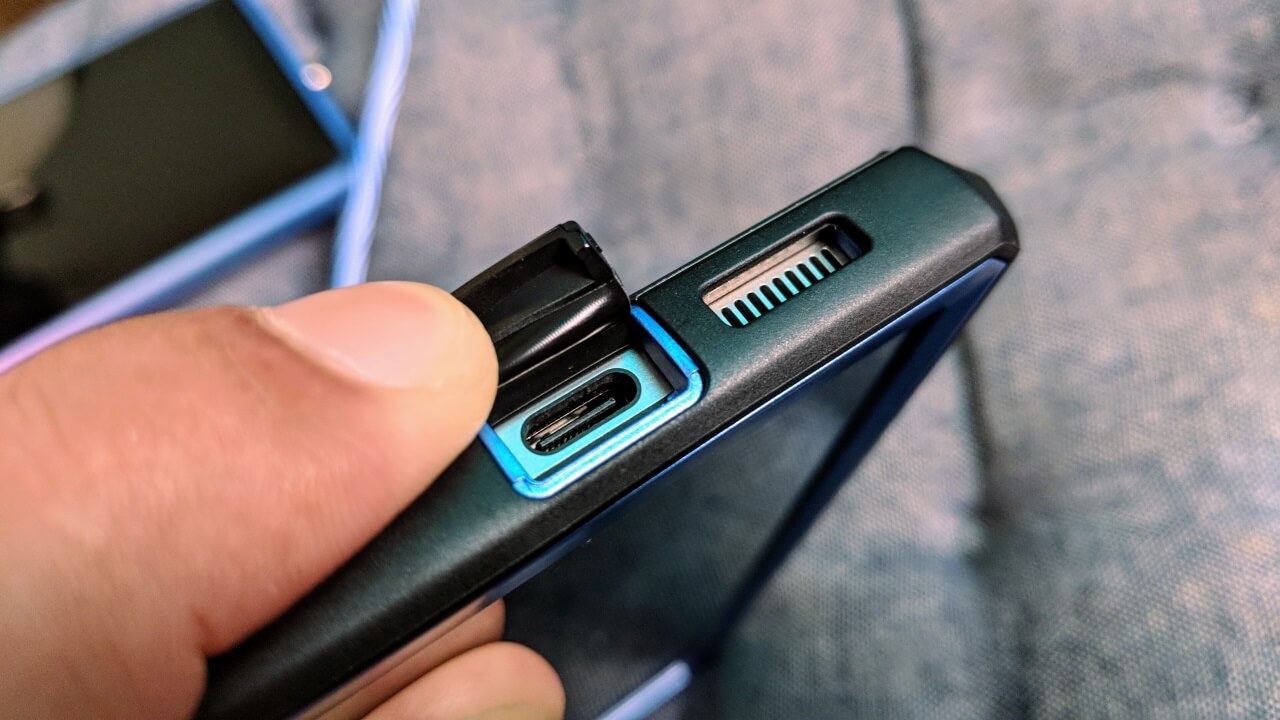 通常のガラスパネルや保護フィルムを貼っている状態と、お考えいただければよいかと思います。ちなみに「GUARDIAN」は全方向保護ケースということで、コネクタ部分はキャップ式です。正直 “ここまでしてくれなくてもいいのに” と、個人的には思いました。
