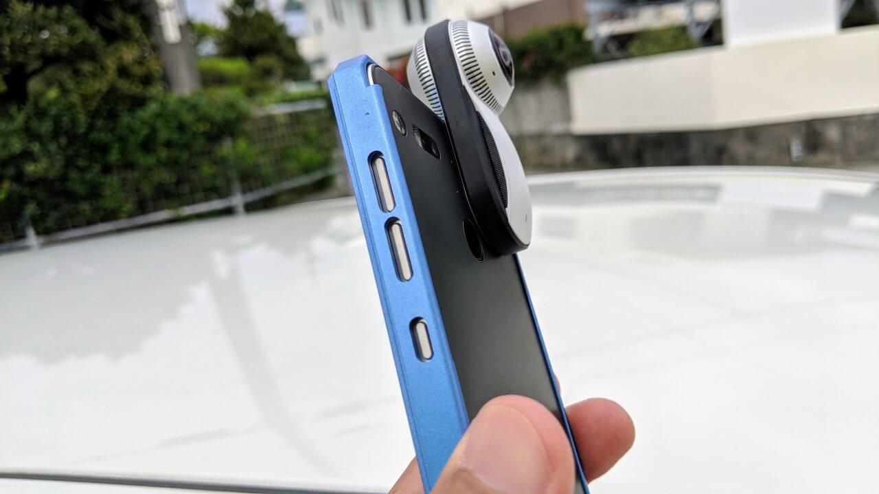 前面部分だけでもちゃんとホールドされるのですが、これがなかなか良い感じの “バンパー” かと思いました。しかも前面部分のみ装着して、「360 Camera」を利用することができました。