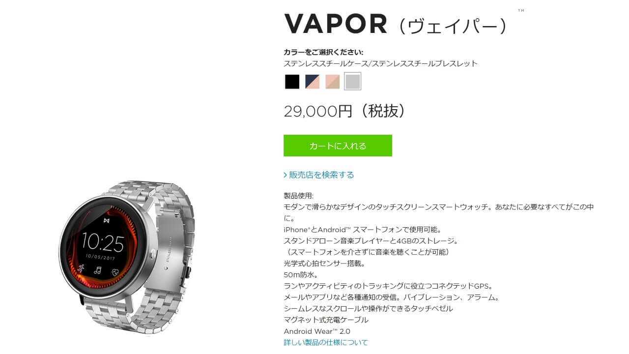 2018 年 3 月 6 日、国内の Misfit 公式サイトにて同社初の Android Wear スマートウォッチ「Misfit Vapor」の追加色となる “ステンレススチールケース / ステンレススチールブレスレット” が発売されました。