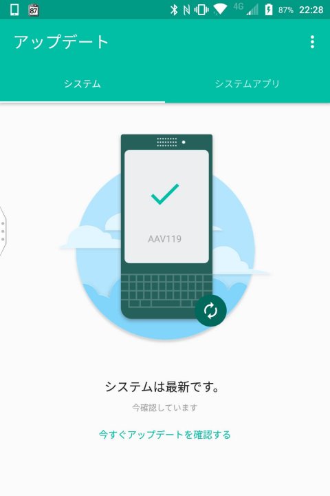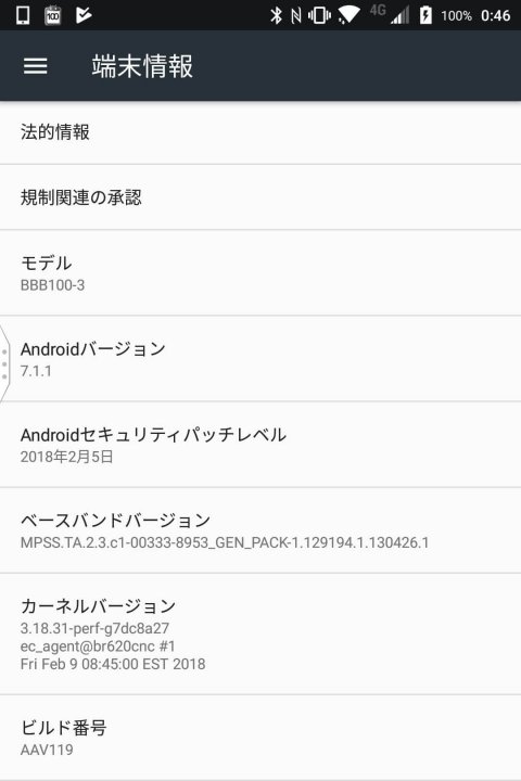 OS バージョンは、相も変わらず Android 7.1.1 のまま。ビルド番号は、「AAV119」に更新されています。