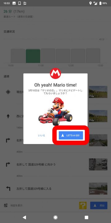 Google は 2018 年 3 月 10 日、「Google マップ」アプリにおいてスーパーマリオのキャラクター「マリオ」とドライブができる機能を期間限定で追加しました。