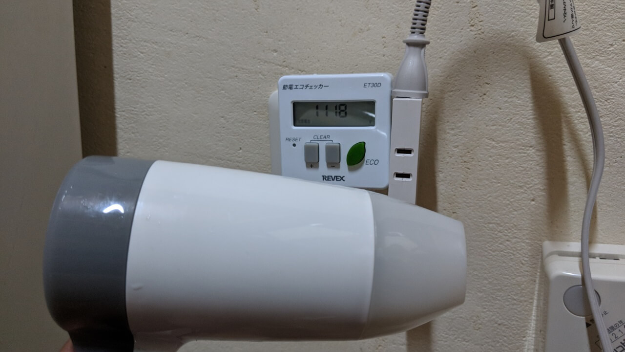 ドライヤー温風時の通常出力は、1,117 ~ 1,118w 程度でした。