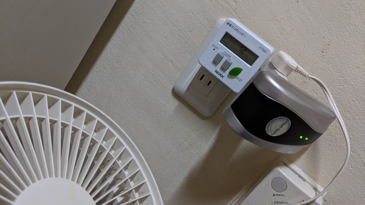今回の簡易検証は、「エコチェッカー」を壁のコンセントに挿し、「エコチェッカー」に電気機器と「エコボルト」を装着して「エコチェッカー」の数値の変化を確認するというものです。元々、当ブログの読者から依頼のあった内容を検証するという流れとなります。まぁ、結果は見えてますけどね。