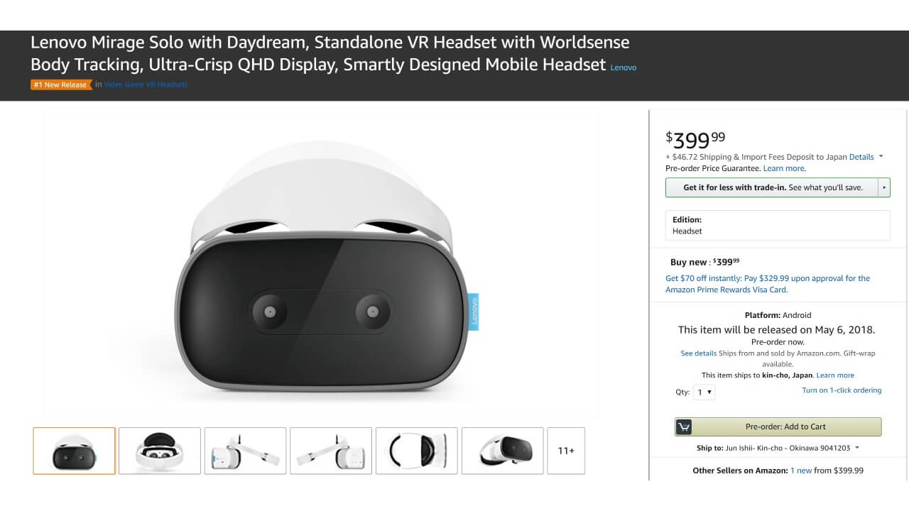 米国の Amazon.com において、CES 2018 で Lenovo から発表されたスタンドアロン Daydream ヘッドセット「Lenovo Mirage Solo」の予約を開始しました。