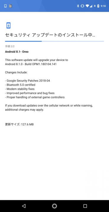 今回のアップデートは、Androidセキュリティパッチの更新を含むマイナーアップデートです。しかし、Bluetooth 5.0 認証も行われています。