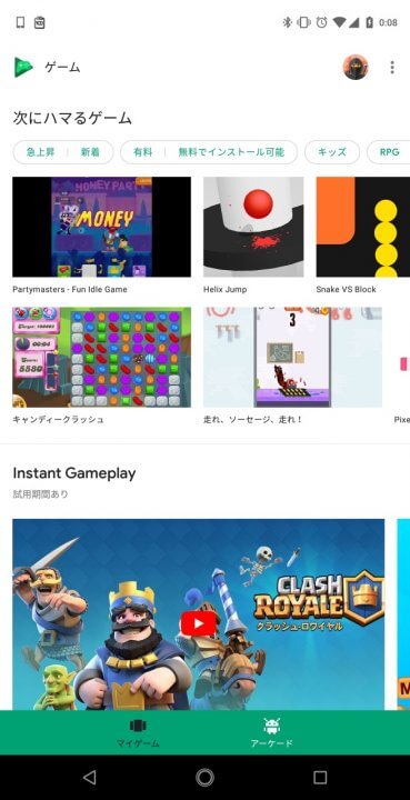Android 用のゲームコンテンツ管理アプリ「Google Play ゲーム」が 2018 年 4 月 11 日に v5.6.29 にアップデートされ、新たに “アーケード” セクションが追加されました。