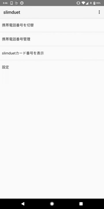 で、どんな機能が使えるのかというと、「SlimDuet」で購入したプラン(電話番号)の確認や切り替えです。つまり、eSIM を Android のシステム上から操作できるという感じ。