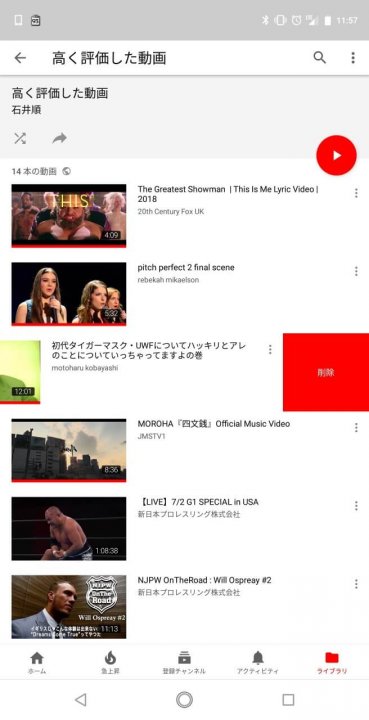 再生動画スワイプ削除機能の内容はそのままで、各再生リストに追加した動画を左スワイプ操作で簡単に削除することができます。