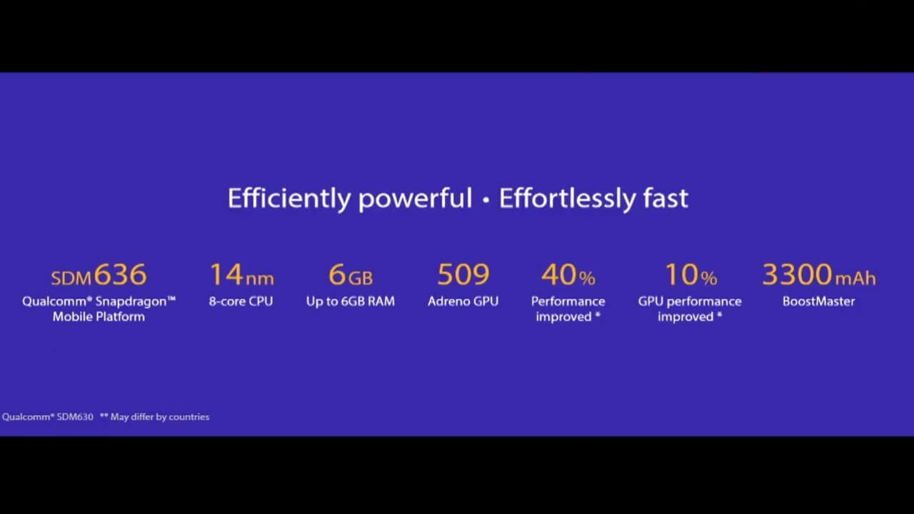 ちなみにラインアップされているカラーは “ムーンライトブルー(Black)” のみで、Snapdragon 636 プロセッサ + 4GB RAM + 64GB 内部ストレージ搭載です。
