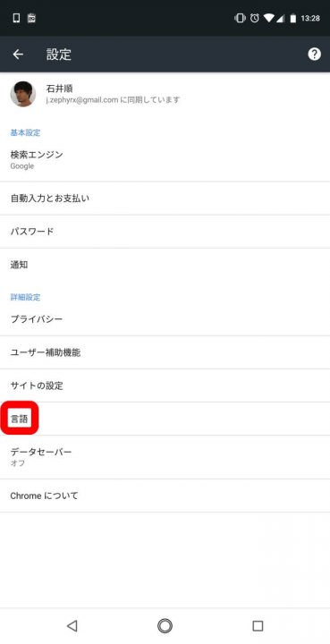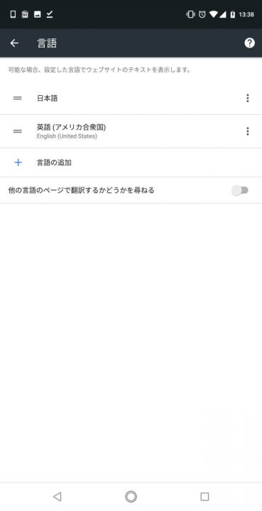 日本のユーザーが多用することはあまりないかもしれませんが、複数言語を操れるユーザーにとっては便利な機能かもしれません。コンテンツの言語設定は「Chrome」のメニューアイコンから “設定” をタッチして、“言語” をタッチすることでページが表示され、設定を行うことができるようになります。