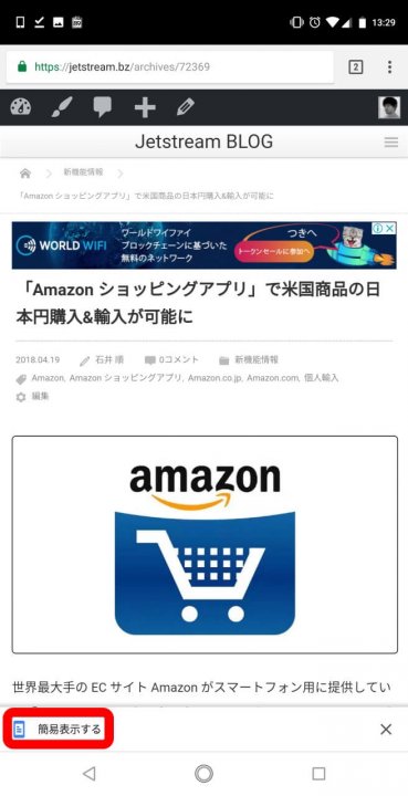 簡易表示の ON / OFF 設定は、コンテンツが簡易的な HTML 表示をサポートしている場合に、簡易表示に切り替えるかウィンドウを表示してくれる設定です。