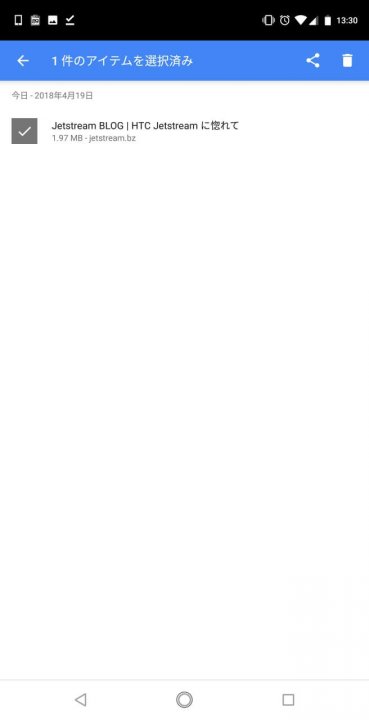 ダウンロードページでコンテンツを長押しすることで、右上に共有や削除メニューが表示されます。