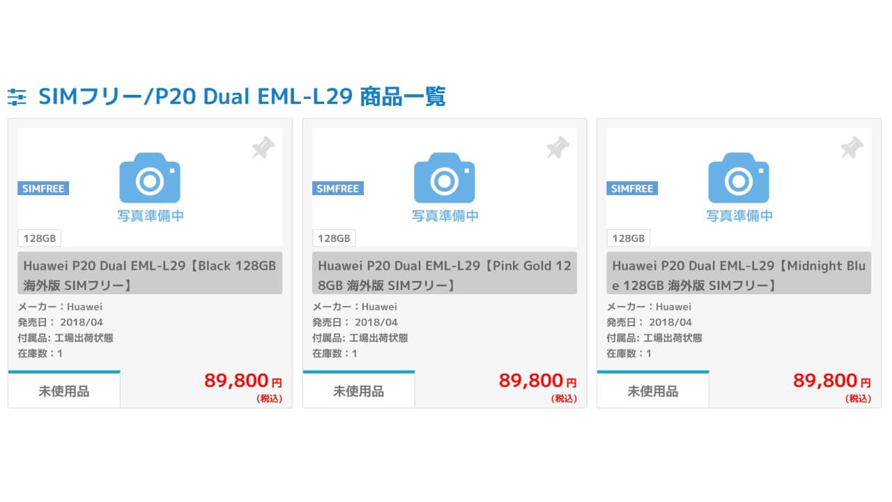 に、2018 年3 月に発表されたの Huawei 製新フラッグシップスマートフォン「Huawei P20」と「Huawei P20 Pro」が入荷した模様です。