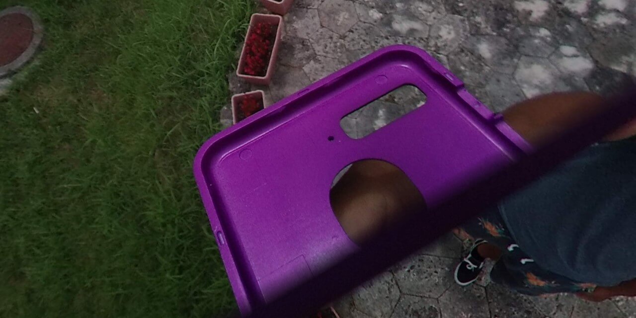 「Essential Phone」自体 190g 近い重さとなるのですが、「DUEDUE ハイブリッドケース」は 2 重構造ということもあり 70g 程度となるため、装着することで総重量は 260g 程度となります。そして次、360 度撮影時に裏蓋が思いっきり映り込みます。